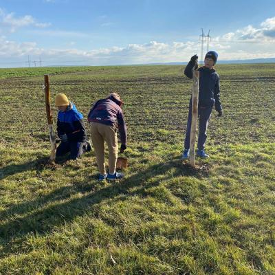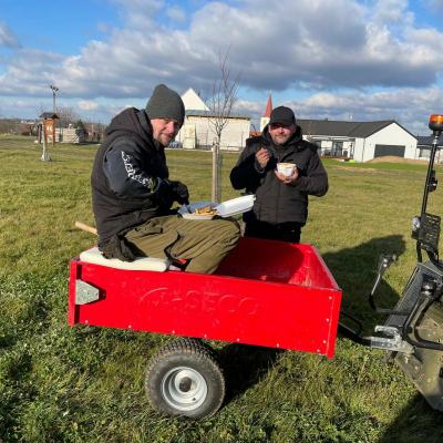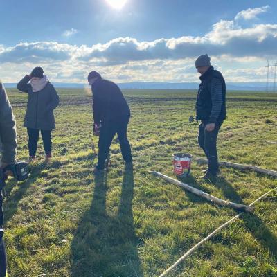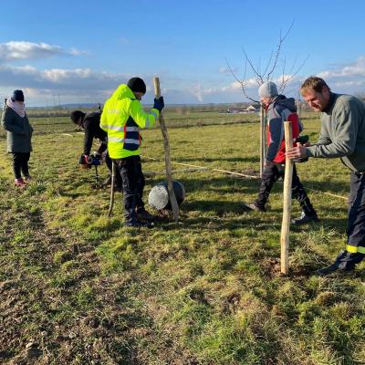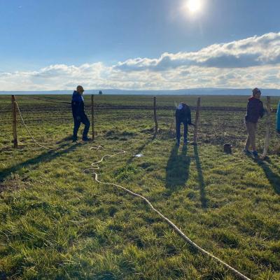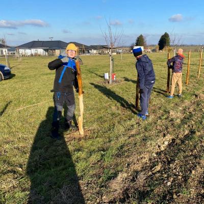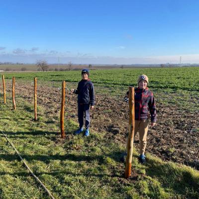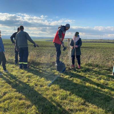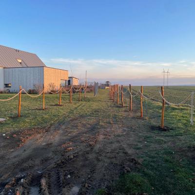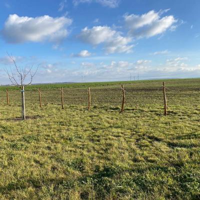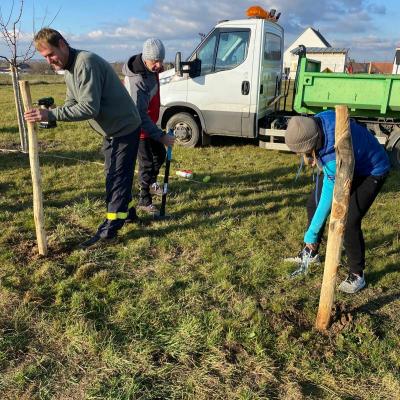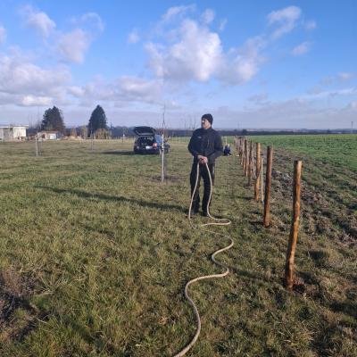 Po obědě se všichni pracovníci přesunuli do sadu, kde společnými silami dokončili oplocení. Když byl zatlučen poslední kůl a srovnána poslední část terénu, bylo vidět, jak moc se práce povedla.