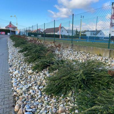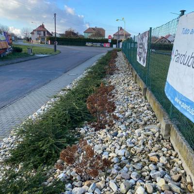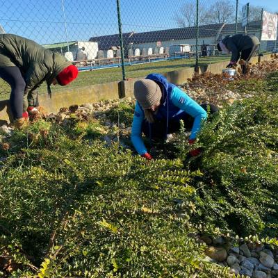 Jedna skupina se pustila do úprav u hřiště – plevel rychle mizel, hortenzie se rozzářily po pečlivém vypletí a okolní plochy získaly nový, upravený vzhled. Druhá skupina mezitím pracovala v obecním sadu, kde vznikalo nové oplocení z akátových kůlů. A také se podařilo odvést kamení ze sadu a převézt ho ke keříkům podél chodníků, kde ještě dobře poslouží.